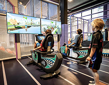 Steuere deinen Avatar auf der iWall, um sportliche Challenges zu schaffen, tritt beim CycloBeat auf dem Fahrrad im Rhythmus der Musik oder teste deine Schnelligkeit und Reaktionsfähigkeit beim RunBeat, wo du auf Lichtsignale an Boden und Wänden reagierst.