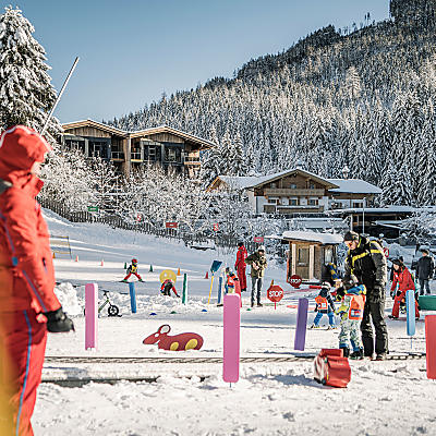 When winter comes to Hotel Kröller everything point to fun on the slopes and snowy adventures. The world around the hotel becomes a wintry wonderland. Little downhill stars start their skiing careers right outside the door. Their initial caution vanishes in a flash - and they are off to the slopes of the Zillertal Arena in no time. Bright eyes and glowing cheeks are included in our family ski holidays in Austria.