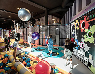 In the trampoline park, you can leave the world far below you, while the Ninja Warrior course, the Playtainment Castle and our jump, crawl and slide areas on two floors playfully improve your strength, coordination and stamina.