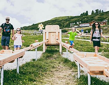 The Latschenland at Isskogel is a play paradise at 1,950 metres above sea level with an adventure climbing route and the Latschensee with loungers to relax in. The two 150 metre long wooden marble runs are a real highlight. The lanes run parallel – whose ball will overcome the obstacles to the finish first?